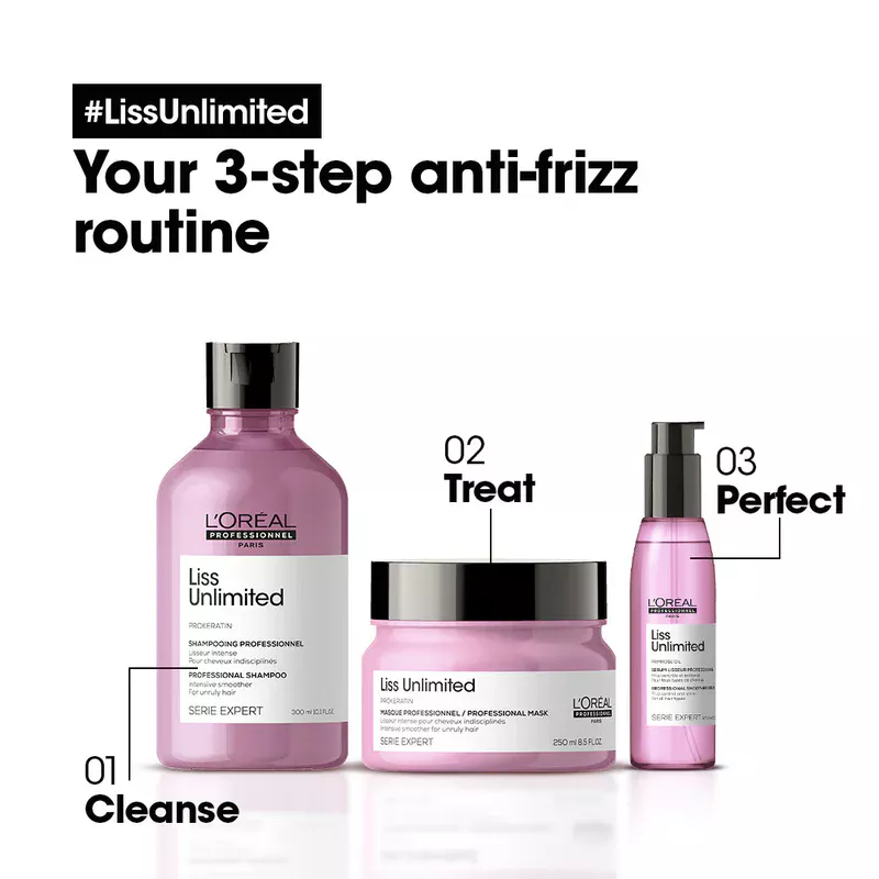 For optimum and long-lasting results, complement your hair care routine with the full Liss Unlimited range. Smooth, nourish, and transform your hair into a shining masterpiece that’s strong, soft, and super smooth.